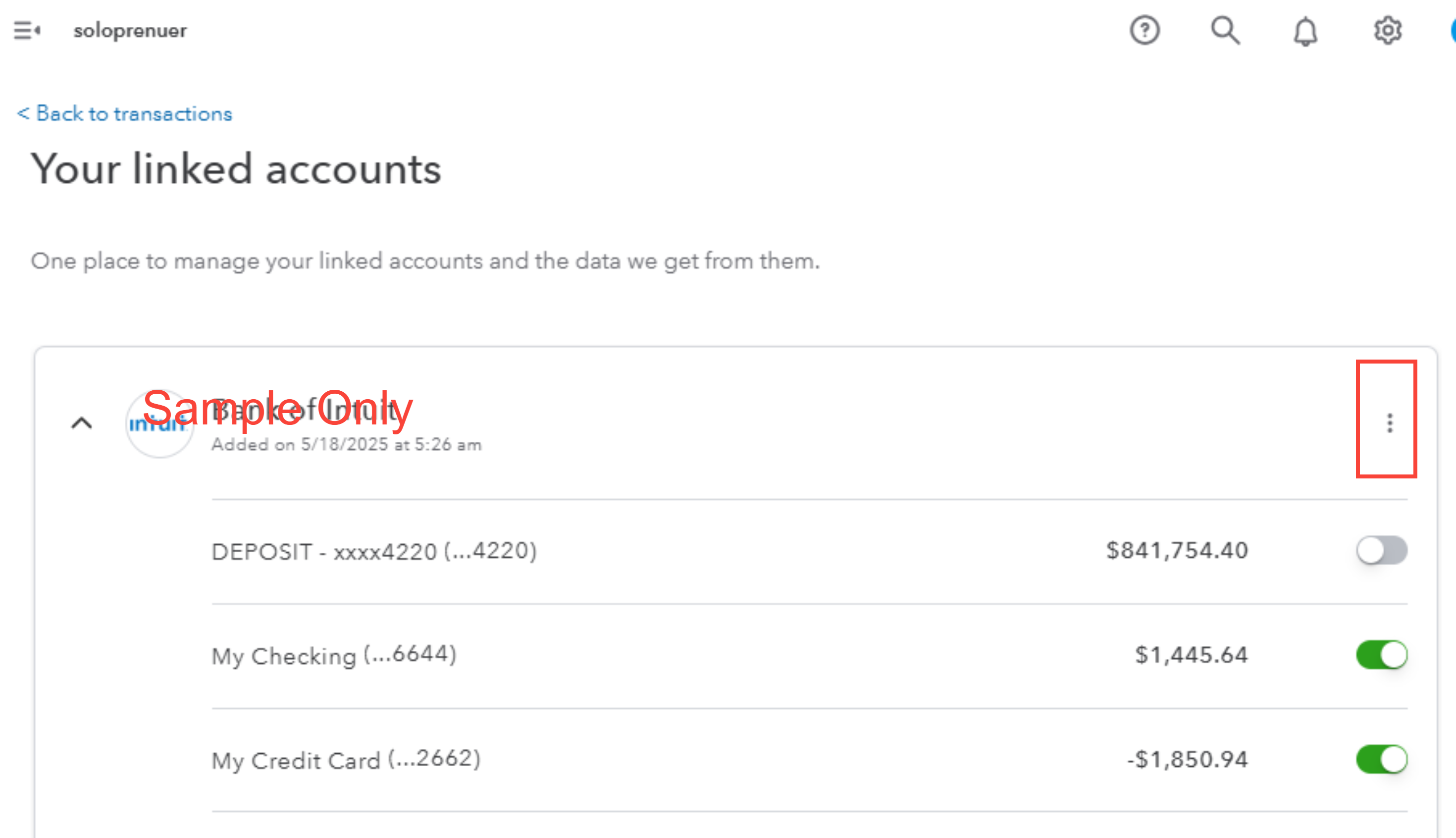 To remove or edit your bank account in QuickBooks Solopreneur, please follow these steps: