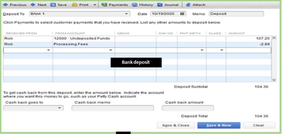 Once you're done, you can now make a bank deposit and record the fee. To record a bank deposit, follow the steps below: