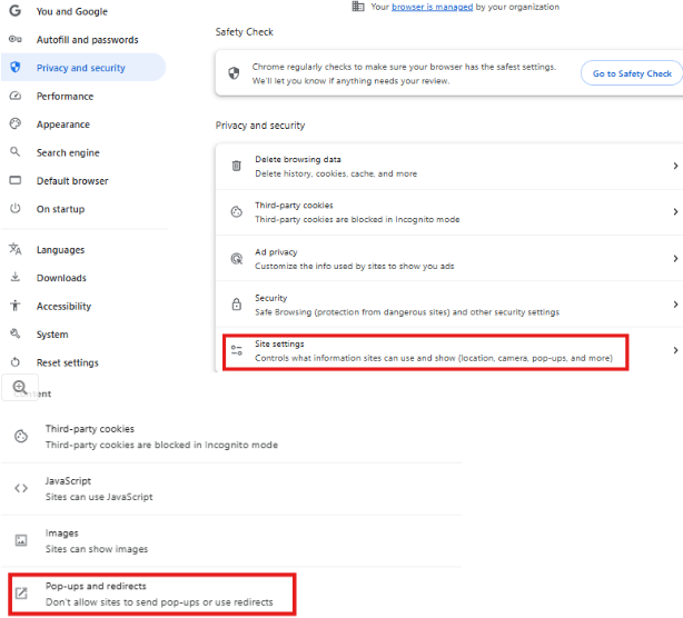 - Click Pop-ups and redirects.