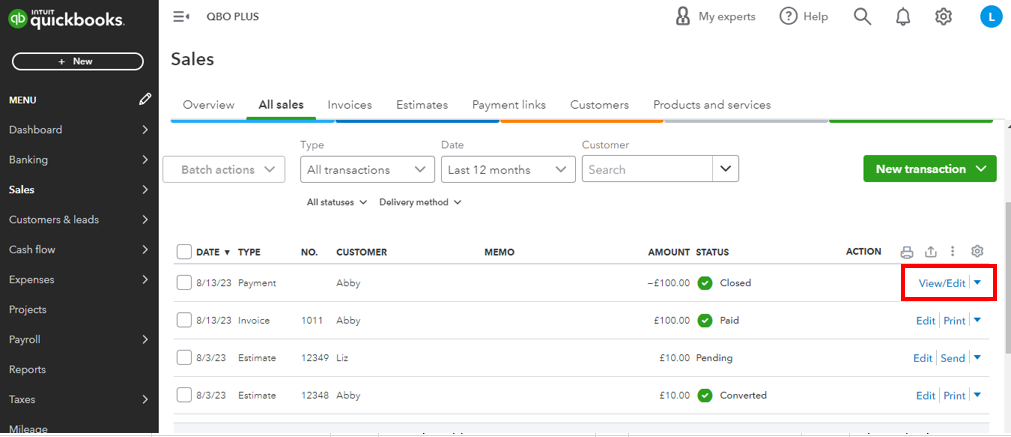 Then, go back to the All Sales page and follow the steps provided by my LeizylM. Then, make sure we click the Save and close button to correct the reference number.