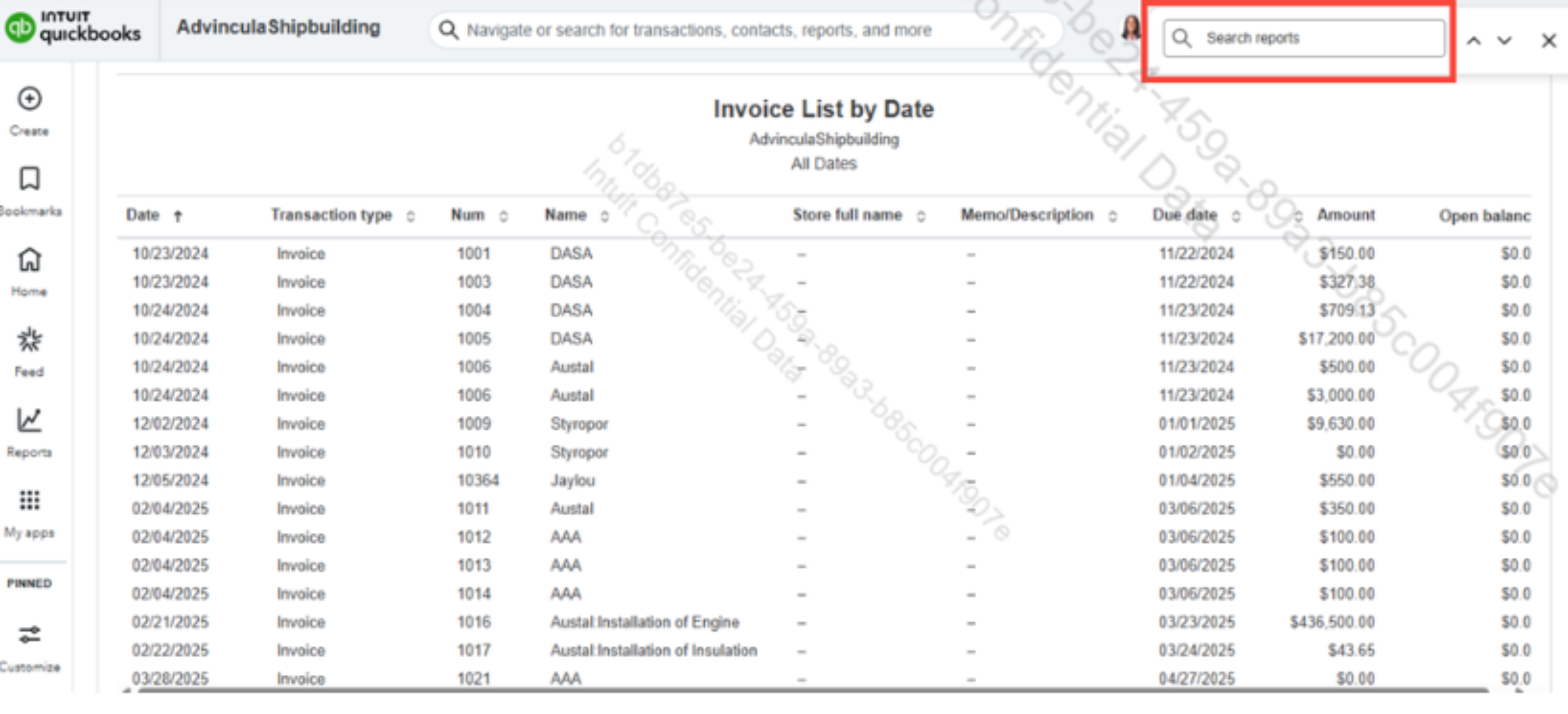 Alternatively, you can search your invoices through the Invoice List report by going to the Reports section. From the page, you can use the keyboard shortcut CTRL + F to search for the invoice number, amount, or customer name.