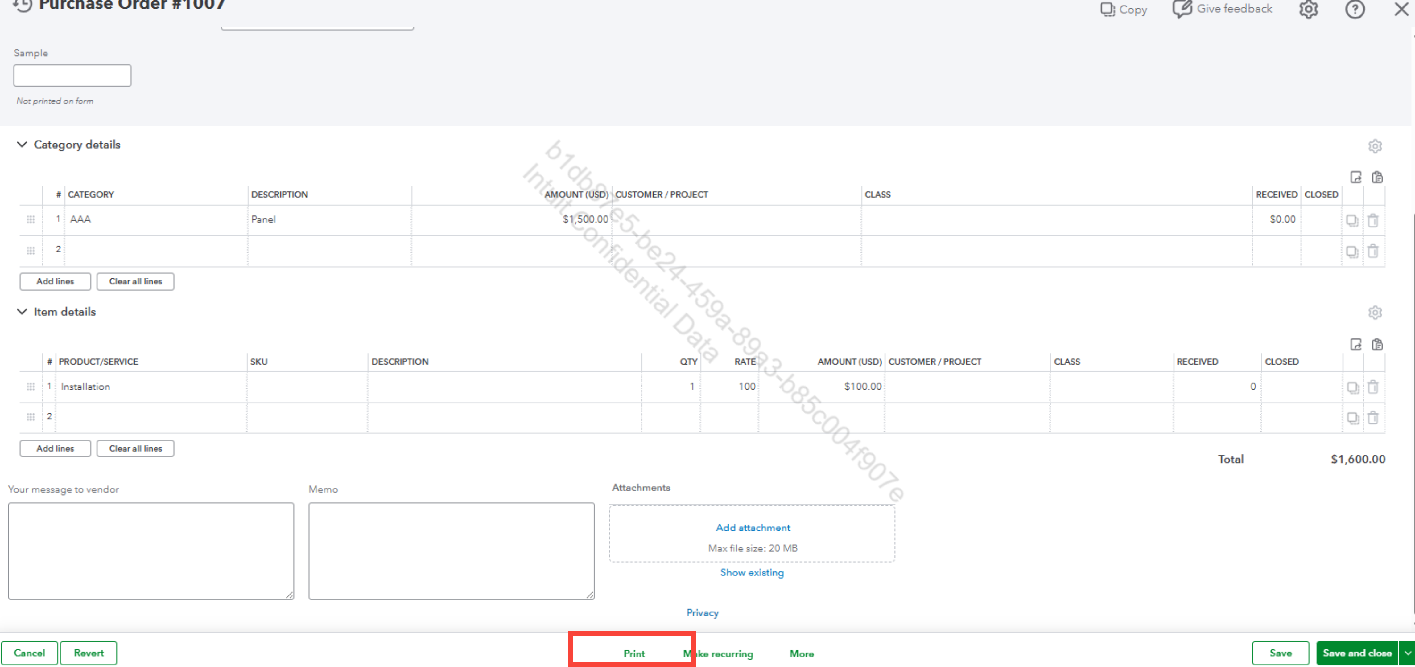 Afterward, return to the Purchase Order page. To see your changes, click Print or Preview PDF below to confirm that your adjustments have been applied.