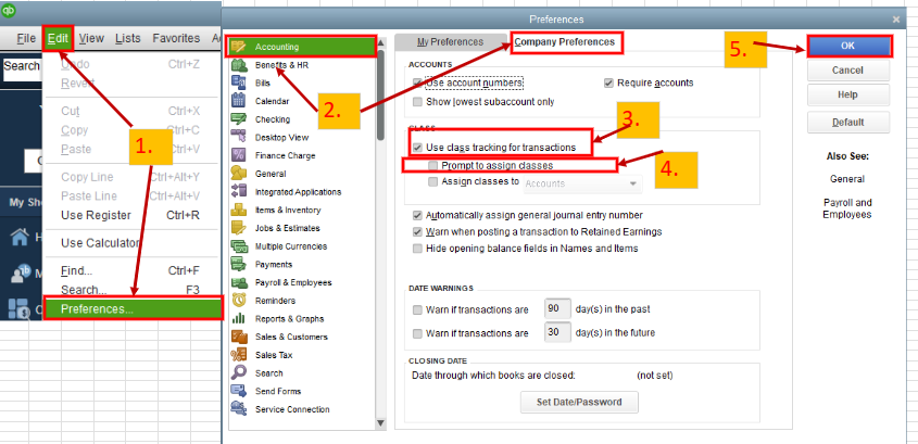 On the other hand, you'll need to turn on the Class feature from your company file and set it up before using it. To enable this option, these are the steps: