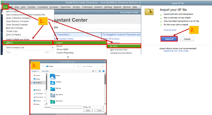 Intuit Interchange Format (.IIF) files are ASCII text files that utilize a Tab-Separated Value (TSV) format. These are files that you can use to import or export lists or transactions in or out of your company. To import this in QBDT, these are the steps:
