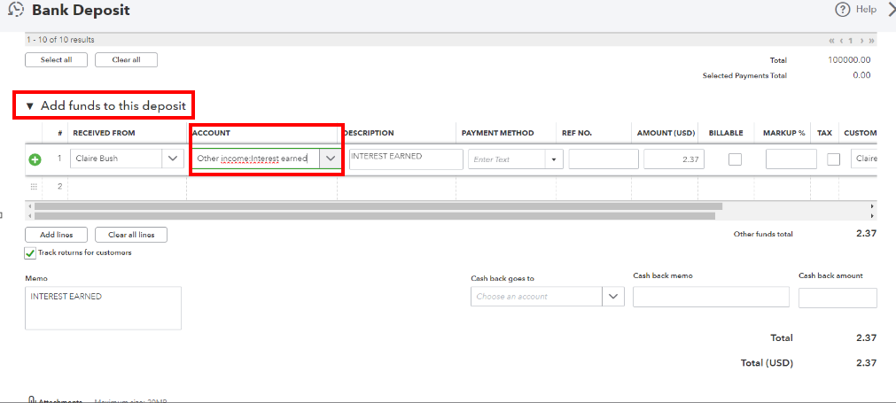 - Go to Add fund to this deposit section and change the categorization into Income: Sales from the Account column.