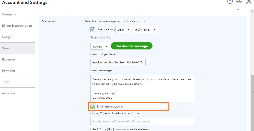 To clarify, did you send the customer's invoice or estimate to your email by separating it with a comma in the Customer email field? I suggest activating the Email me a copy feature to receive a copy of the transaction. This way, it won't mark as viewed when you open the link.