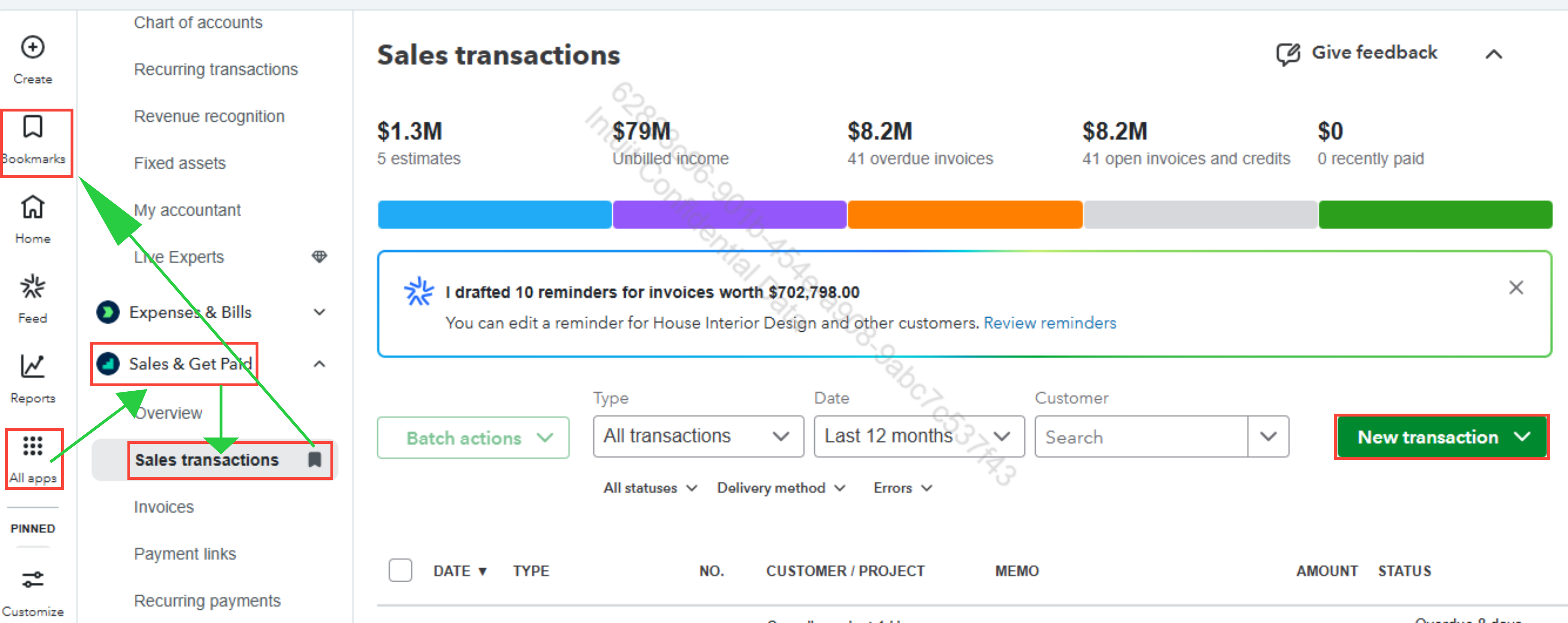 - Click the Bookmarks icon next to Sales transactions.