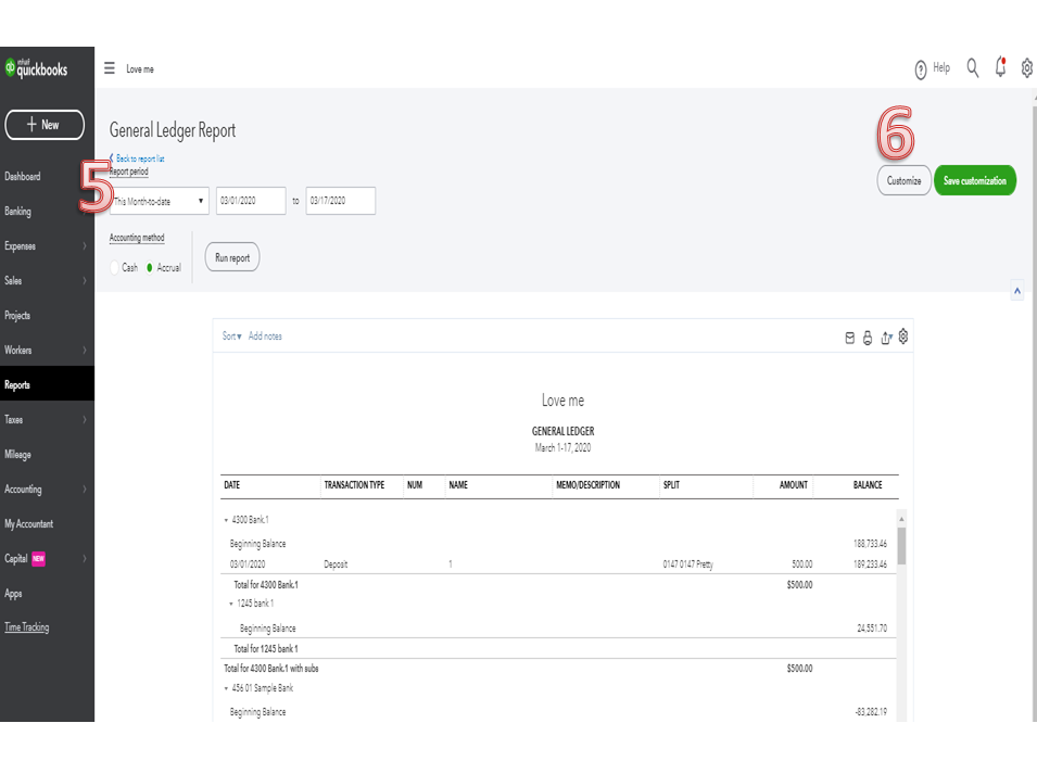 It only takes a few clicks to view the general ledger, which is accessible in both accountant and business view.