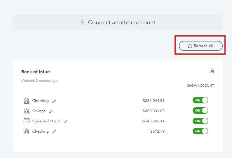 To get all the transactions from your bank, we can refresh your account.