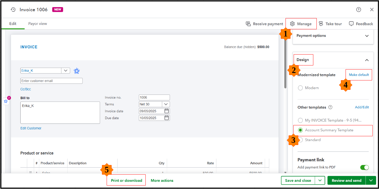 - When finished, click Print or download. Then, click Print to preview your invoices.