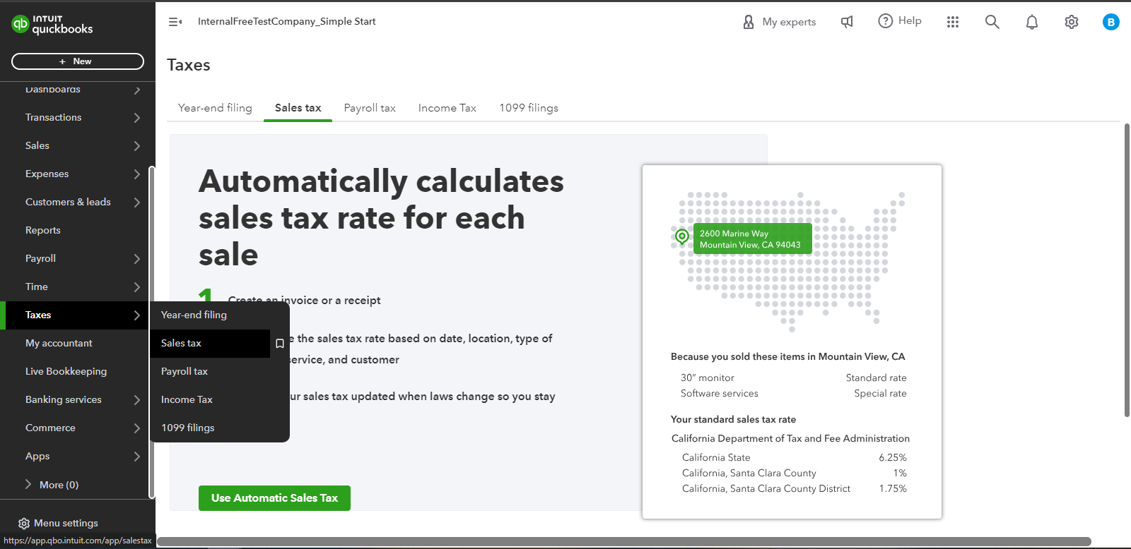 - Click the Use Automatic Sales Tax.