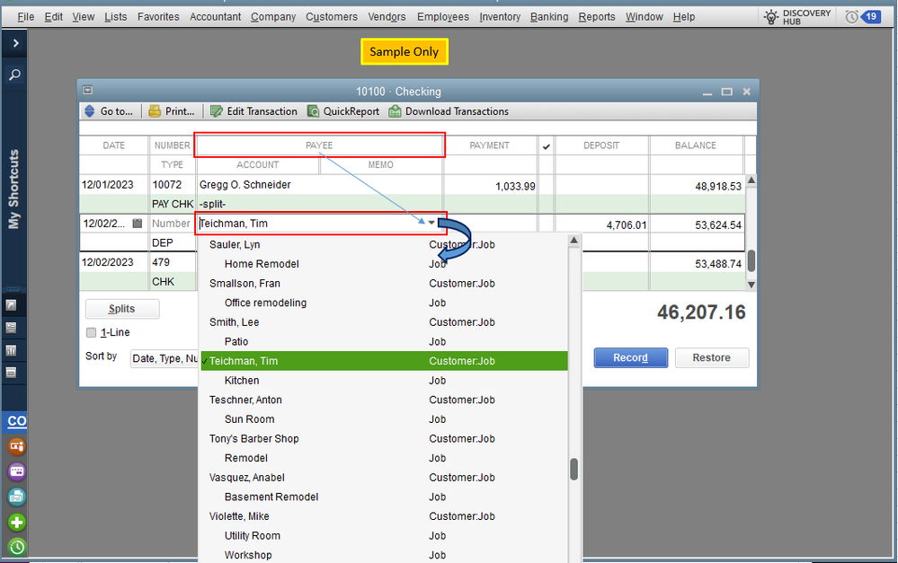Buy nowA few years Ago, I used to reclassify transactions from Sales to Accounts Receivable without a problem. Now I can't do the same.. When I use the bank register for a deposit, I select a "customer" on the "payee" field, but when I look for de deposit , I can't see the customer selected on the "received from" field... Isn't should be the same field?