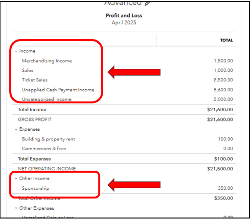 Once set up, you can link them to the specific product or service items associated with your projects. For instance, you could set up one account exclusively for ticket revenue, another for sponsorship income, and a separate one for merchandise sales.
