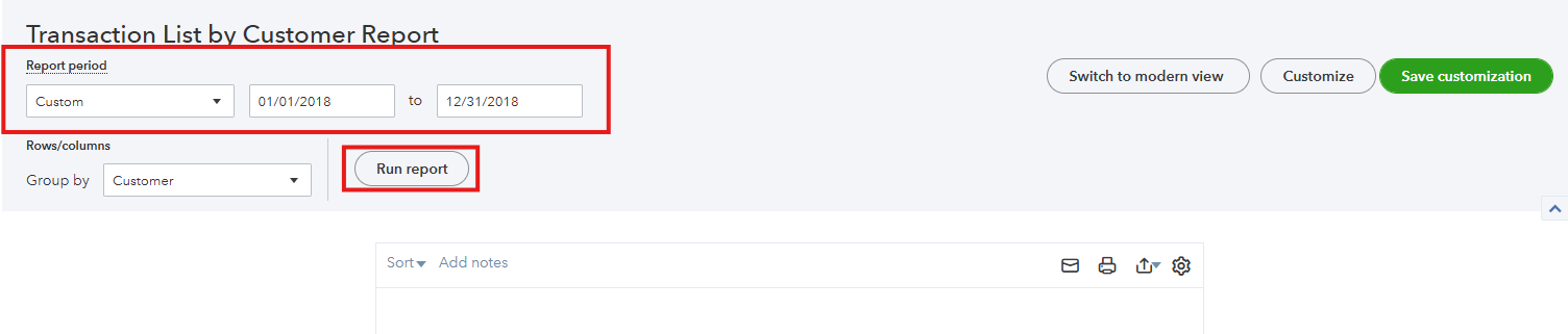 - Select the date range from 01/01/2018 to 12/31/2018. Then, click Run report.