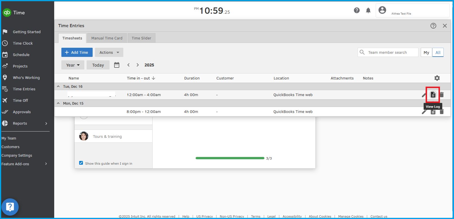 On the other hand, if you're referring to QuickBooks Time, you have two options to access the original time entries: using the View Log icon or downloading the Timesheet Log under the Reports tab. Here's how: