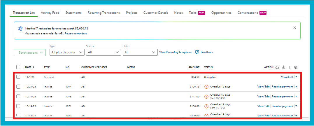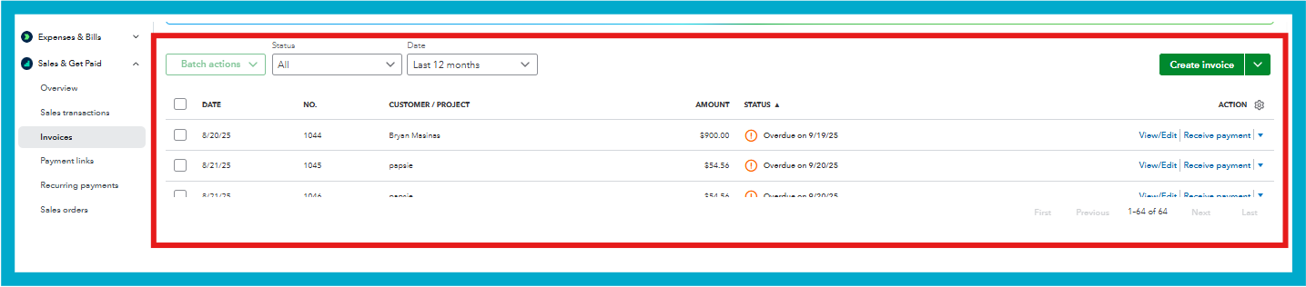 On top of that, we can also find the entry from the invoice list or customers' transaction lists. Here's how:
