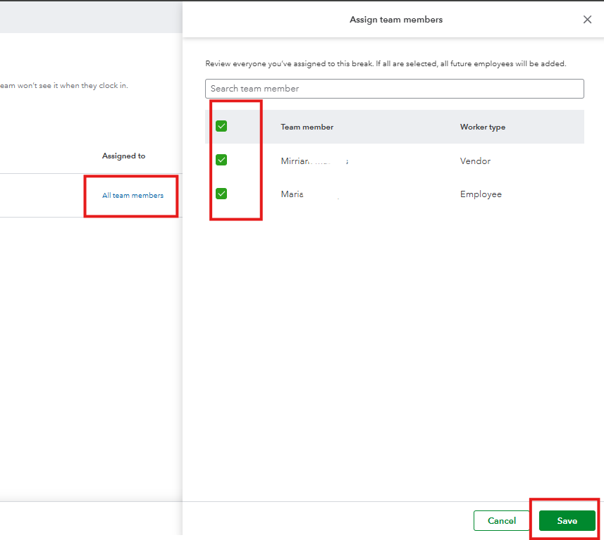 Additionally, ensure that this item is assigned to the correct people. You can check it by clicking the hyperlink name below the Assigned to column and ticking the box of the worker you want it to apply to, and then Save.