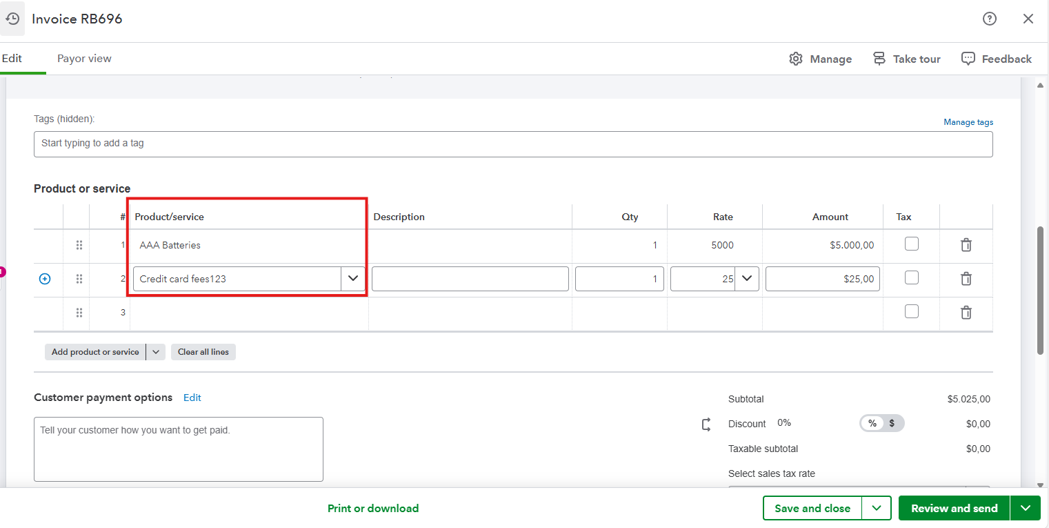 Automatically adding a credit card surcharge to transactions in QuickBooks Payments is not currently available, redrockfence. Instead, you can manually calculate the fee and include it as a separate line item on your invoice or sales receipt.