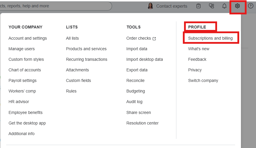 2. Under Profile, select Subscriptions and Billing.