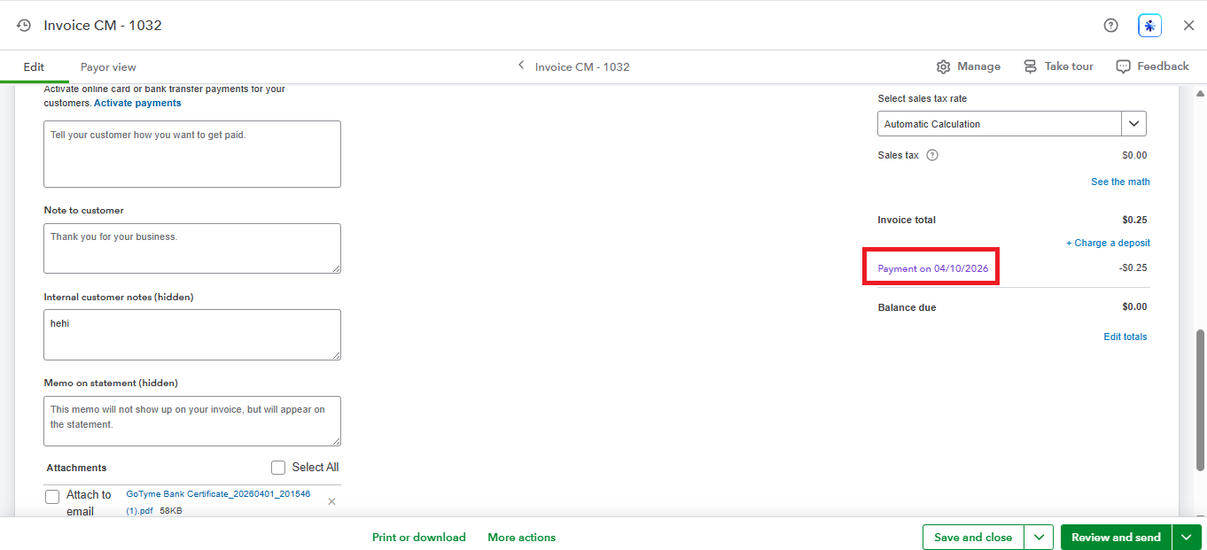 To help narrow this down, could you please clarify whether you are using QuickBooks Payments to collect this invoice, or if it was manually marked as paid? If it's through QuickBooks Payments, are you seeing the payment in your Merchant Service Center, or only in QBO?