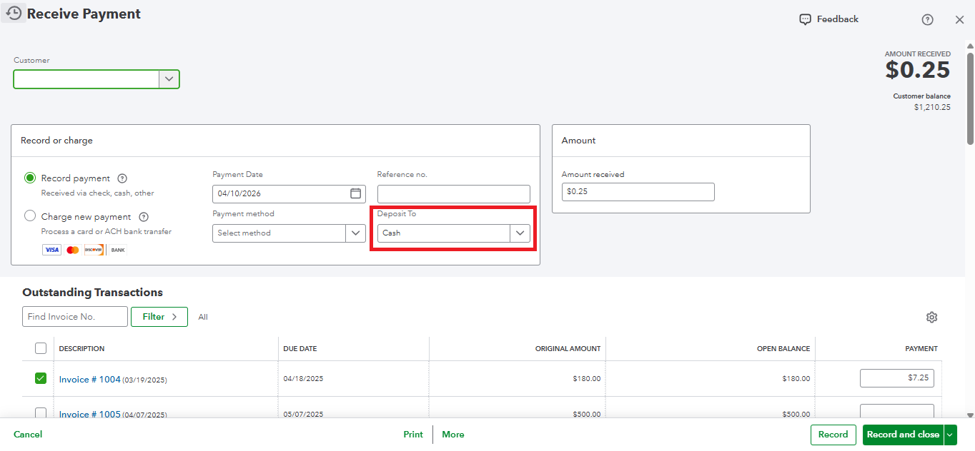 Alternatively, you can run a Deposit Detail report so you don't have to open individual invoices. From the report, you can click any payment to see which account it was deposited into within your QuickBooks Online account.
