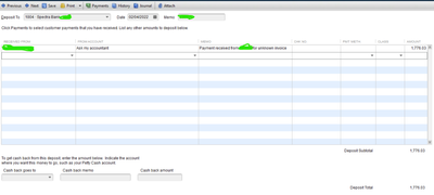 Now, my question is how I can show the "Ask My Accountant" entry to receive the customer/invoice payment? Please let me know if I can describe more. Thank you very much.