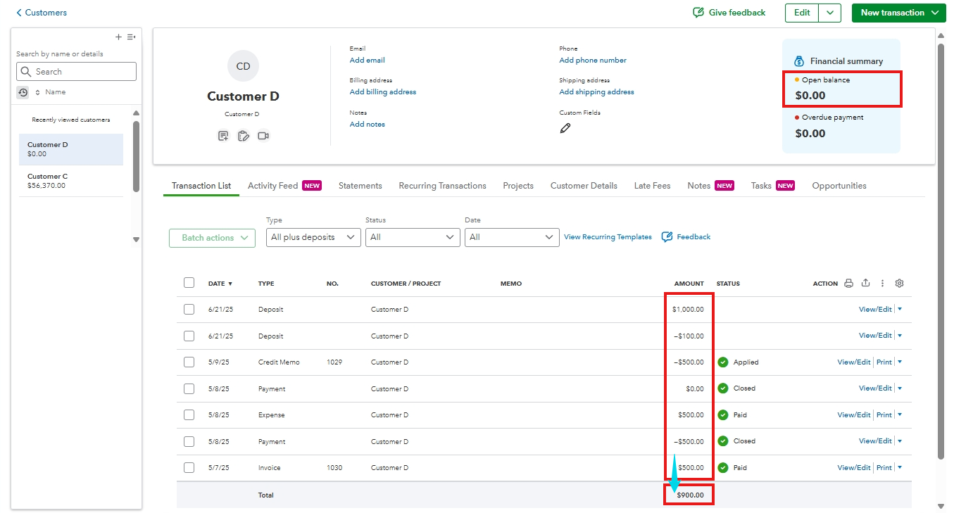 The most important thing is to check your Open balance. If it shows as zero, that means the client doesn't owe anything, and the transaction has been correctly applied. With this, I recommend changing the filter to All transactions to show you the correct balance owed by the customer, which should match your Open balance.