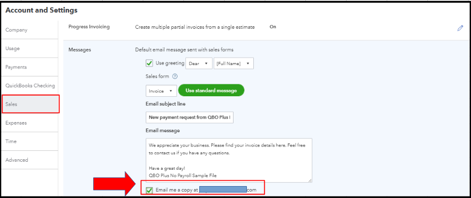 Then, if you meant sending copies of the invoices to your Outlook, we can review your sales forms settings to ensure this feature is enabled. Here's how: