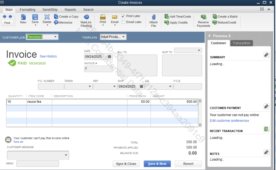 6. Once the invoice is open, look at the top left. If it says Paid, there is a payment linked to it.