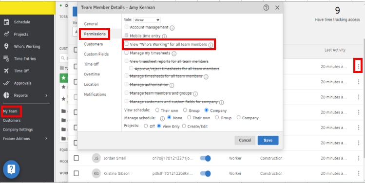Issue- There is no My Team option just Time Team, and when I go there I'm not able to select Team Member or edit them. If I go to the payroll portion and try to edit employees I don't get the option to edit this permission.