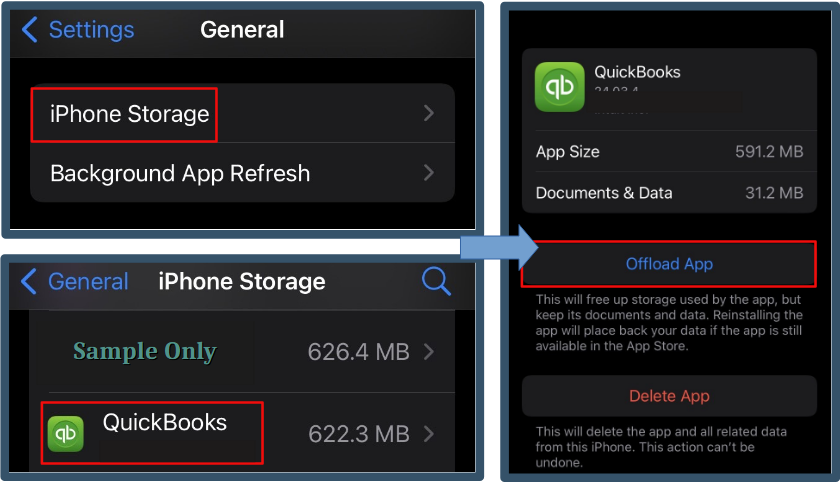 - Tap iPhone Storage. Choose the QuickBooks app.