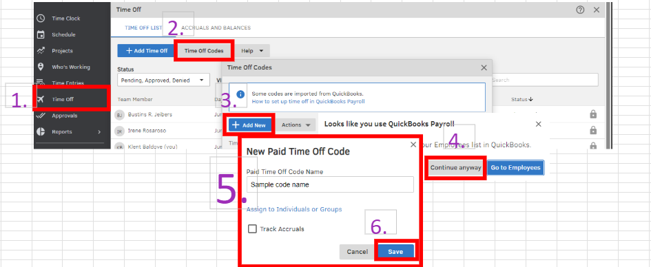 For more details, see this page: Set up and Manage Time Off in QuickBooks Time.