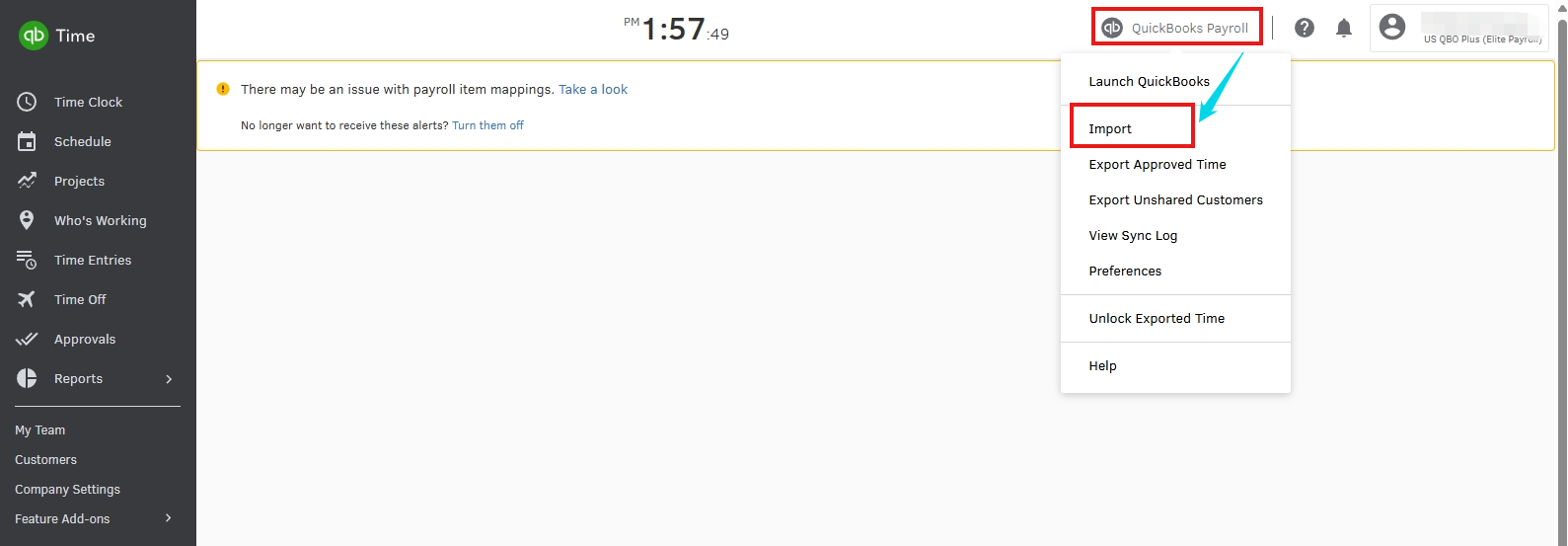 - Open your QB Time account.