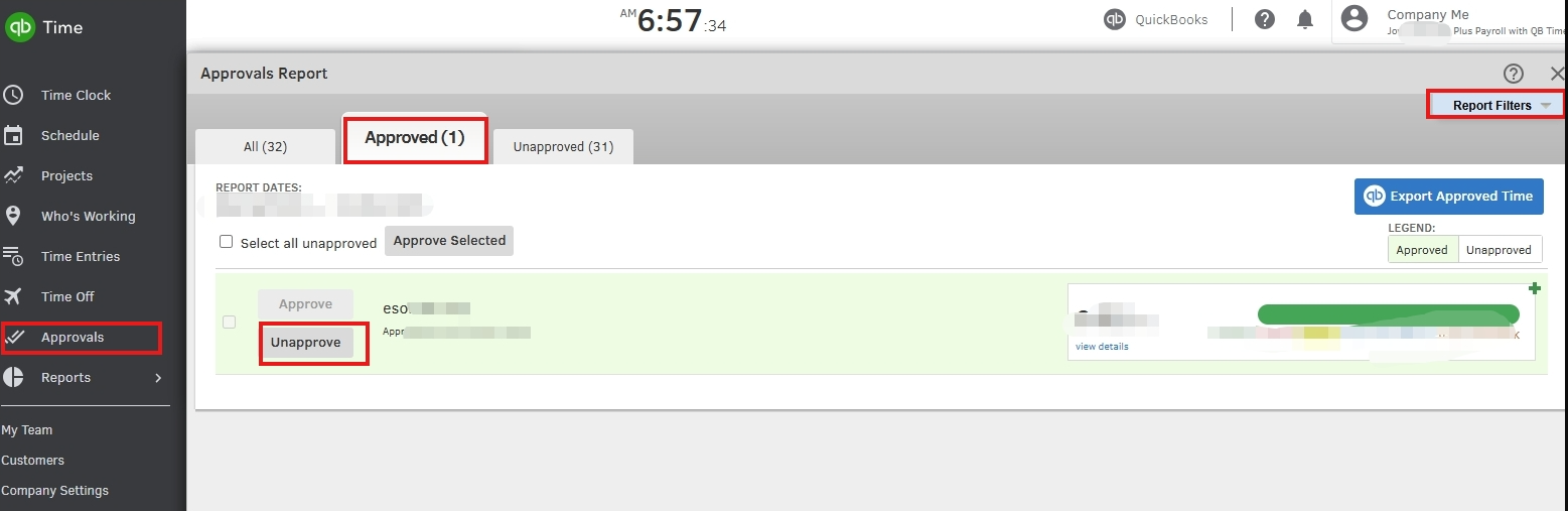 - Select the specific Team member and adjust the Report Dates to include the future date mentioned above.