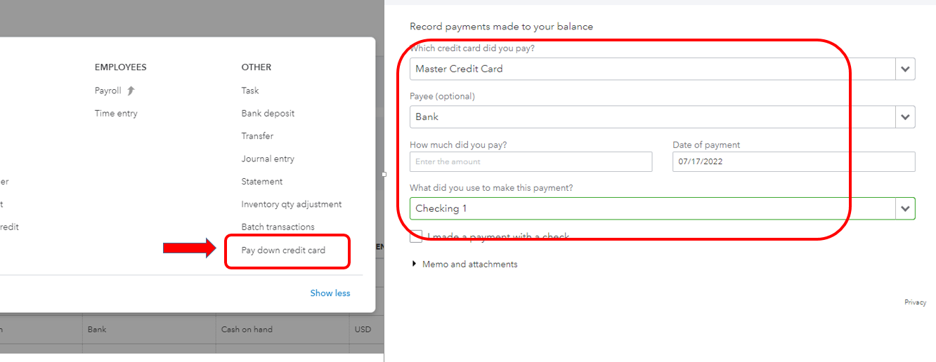 Here's an article about these steps for more details and references: Record Your Payments to Credit Cards.