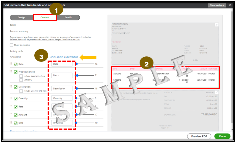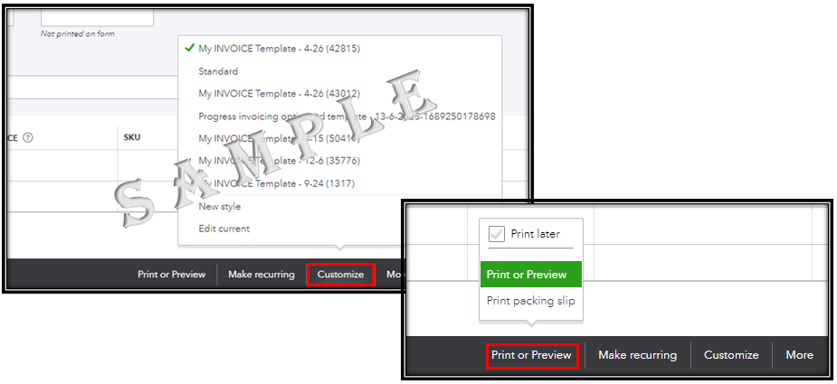 Please note that changing the labels will only affect what your customers see when they receive the invoices. It will not alter the invoice columns when you are creating one. Just make sure to choose the correct template from the Customize button to apply the changes. To verify, you can Print or Preview to see if the column looks the way you want.