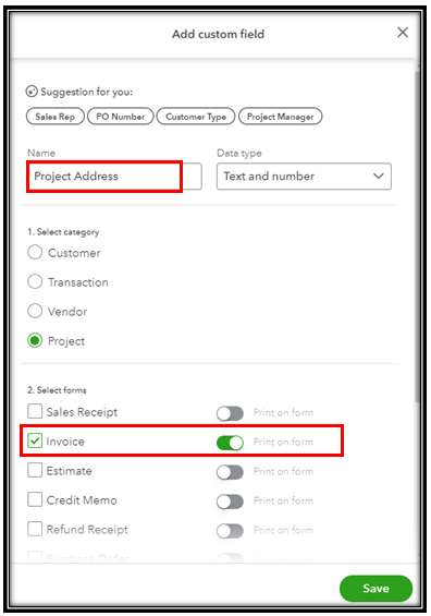 Buy nowHi, menworkingco. I can help you add a Project Address box to your invoices in QuickBooks Online (QBO).