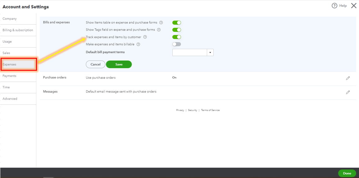 The Track expenses and items by customer may be turned off in your account and settings. This could be the reason why you're not seeing the drop-down when categorizing donors. Follow the steps below to turn on this feature: