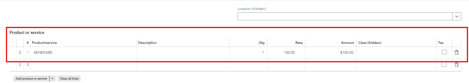 3. Once the transaction is open, you can view the appropriate product or service income account.