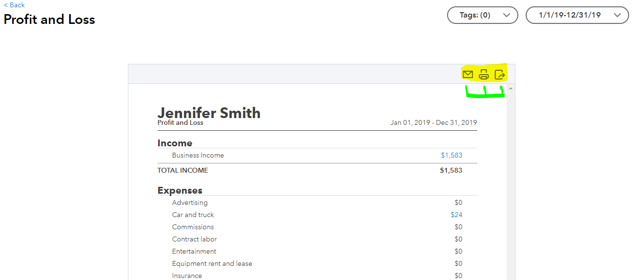 You can now view your 2019 profit statement. In case you need a soft copy, there are utility icons that you can use on the top right corner of the report like the email, printer, and export to PDF icons.