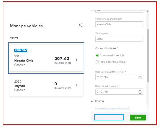 For the time being, you can use more than one vehicle for your business. But you can only have one primary vehicle in QBSE. The option to remove or inactivate one is only possible for non-primary ones.