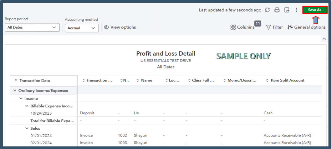 The Profit and Loss Detail report is available exclusively in QuickBooks Essentials, Plus, and Advanced versions. If you're using these plans, you can easily access this report by navigating to the Reports menu.