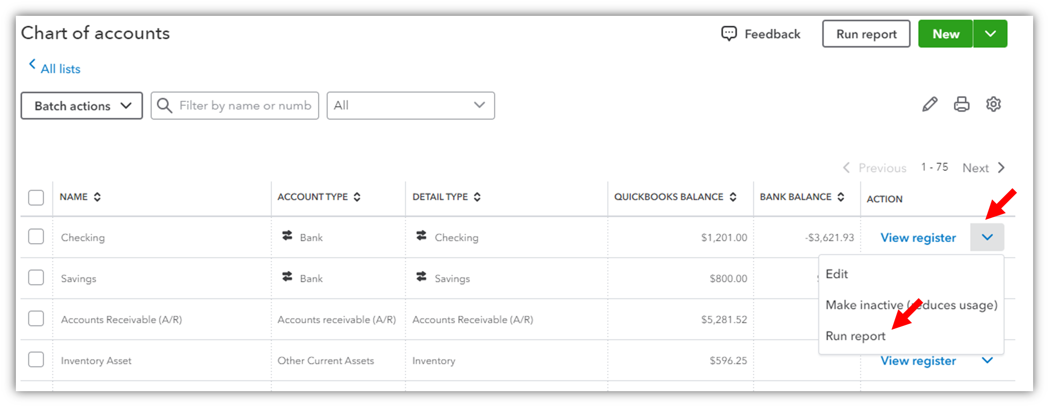2. Choose Chart of accounts.