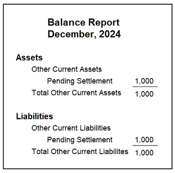 My question is: How do I show “Pending Settlement” on a Balance Sheet?