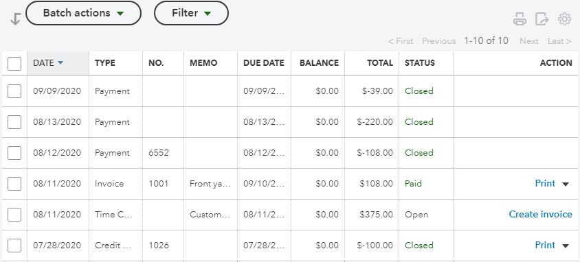 Here's how: 1. In your left navigation bar, go to Sales, then Customers. 2. Access the customer's profile by clicking on their display name.3. Find the invoice you're working with and open it.4. Underneath PAYMENT STATUS, you'll see a payment(s) made hyperlink. Click on it to see each one.5. Hit the payment date link to pull up it's record. 6. Select More and choose Delete.7. Press Yes.