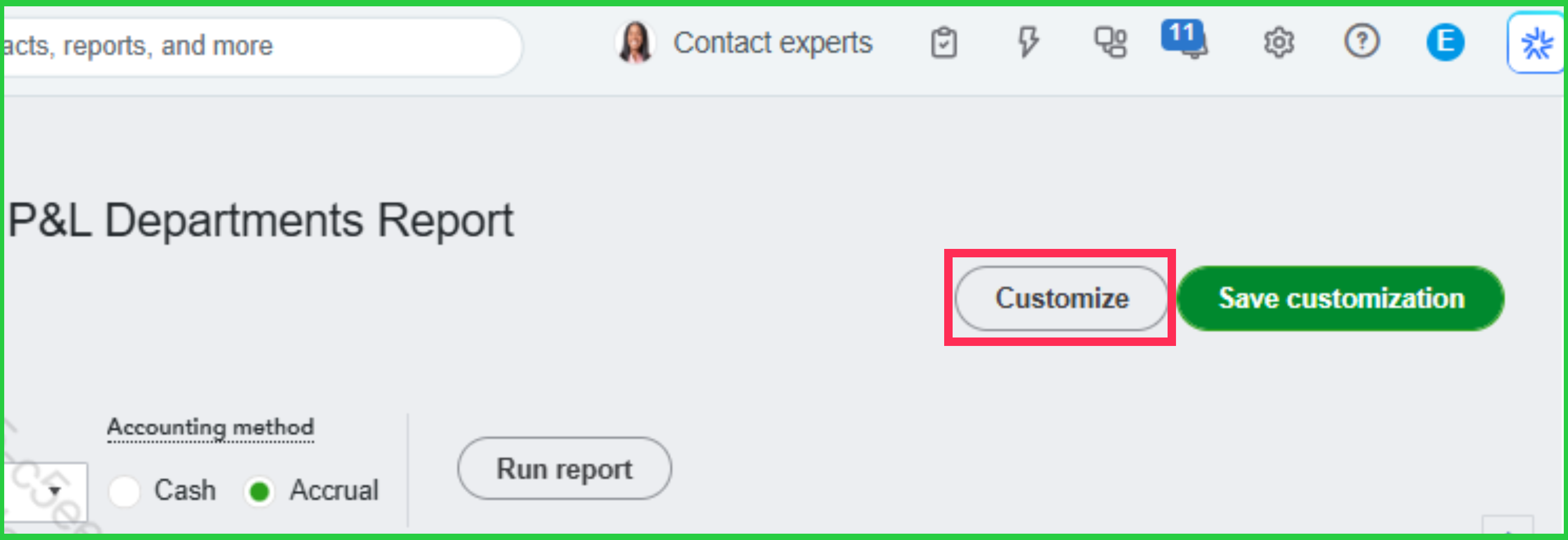- In the report, select Customize.