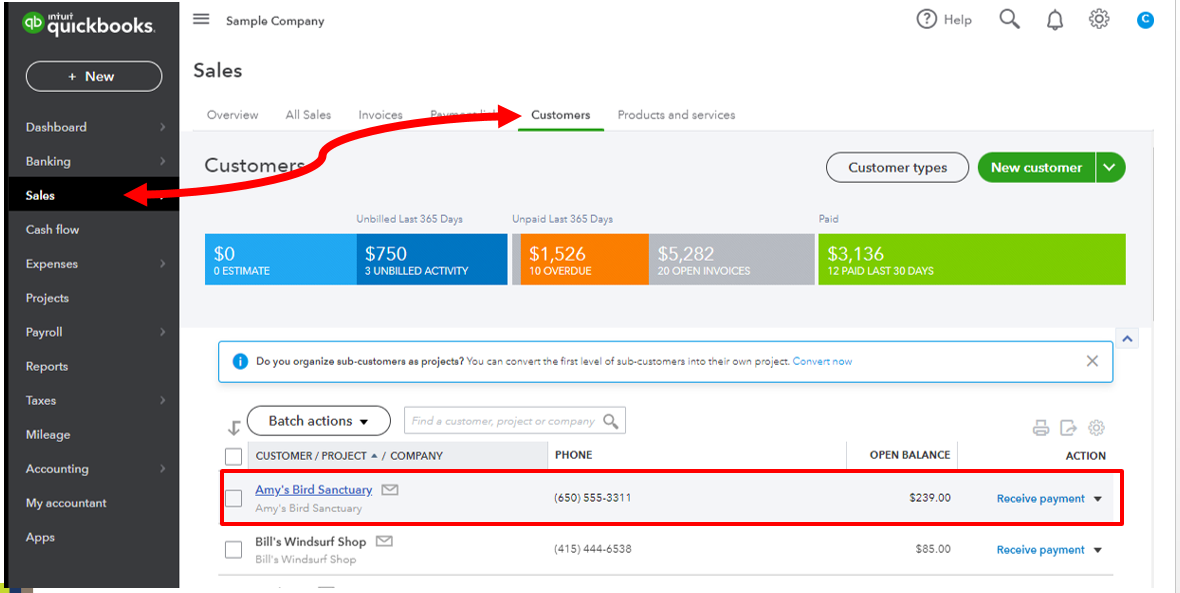 1. Go to the Sales tab and choose Customers.