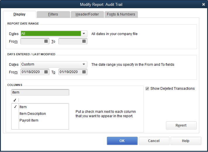 When editing a invoice, we can customize the Audit Trail report to see the original details. Here's how to do it: