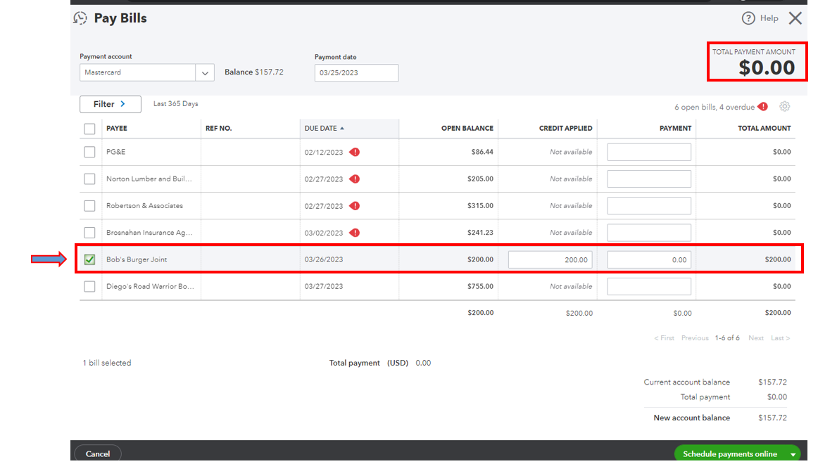 Lastly, link the deposit and vendor credit using the Pay Bills feature.