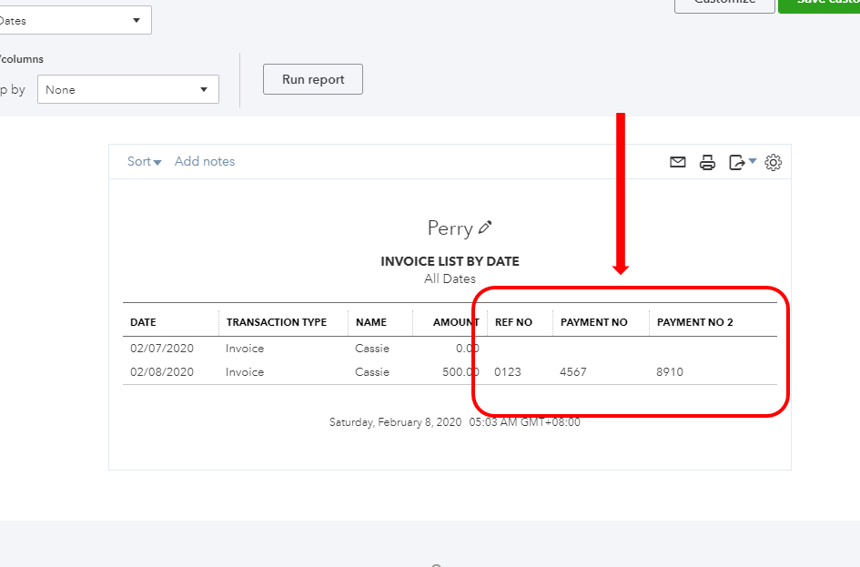If you're referring to a customized invoice, the actual value or data from the custom fields will show up in the reports as long as they're used in the transactions. You just need to customize the report and add these columns. Here's how: